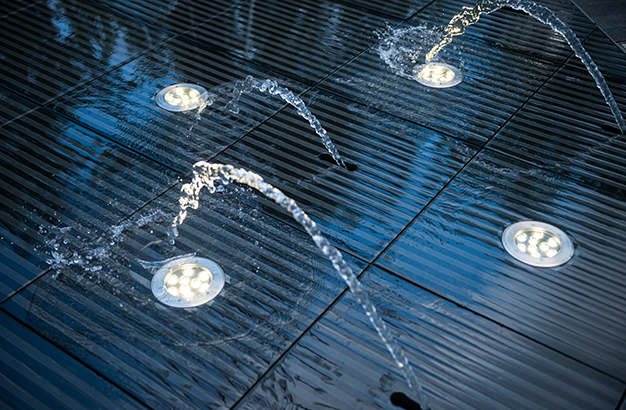水本無形,它的物理特性讓它能輕易地跟隨容器而呈現不同的面貌。獨特的延展性使得水能呈現無以計數的不同效果。燈光的布置,介質的紋理,顏色和動態都能給水帶來無窮的變化。